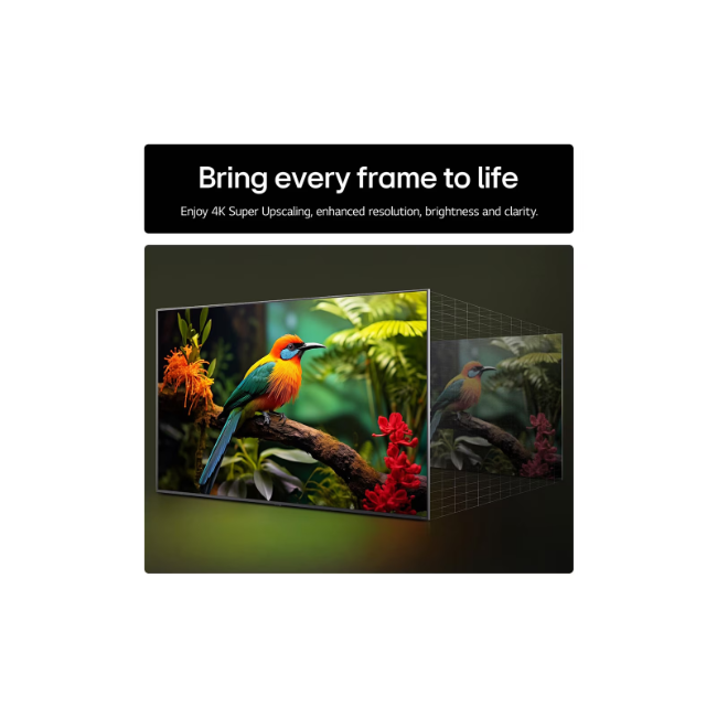 4K Super Upscaling brings every frame to life – LG’s powerful processor boosts the resolution to the original quality. Enjoy 4K Super Upscaling enhanced resolution, brightness, and clarity.