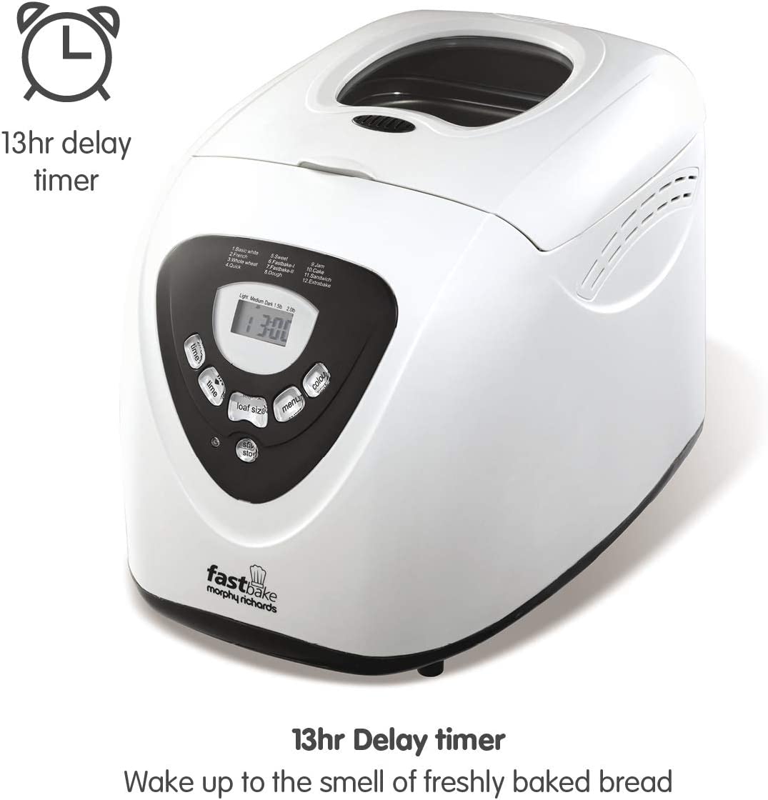 The Fastbake function allows you to have a freshly baked loaf in under 50 minutes. The Fastbake option is available for both 1.5lb and 2lb loaves. An integrated delay timer delays the start of the baking programme, perfect if you would like to wake up to fresh bread in the morning. A maximum of 13 hours can be set.