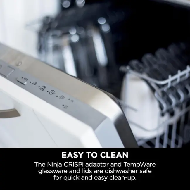 Glass cooking surface: Introducing Ninja TempWare thermal-shock resistant glass containers. Cook without PFAS, and watch your food cook thanks to the transparent glass air fryer design.