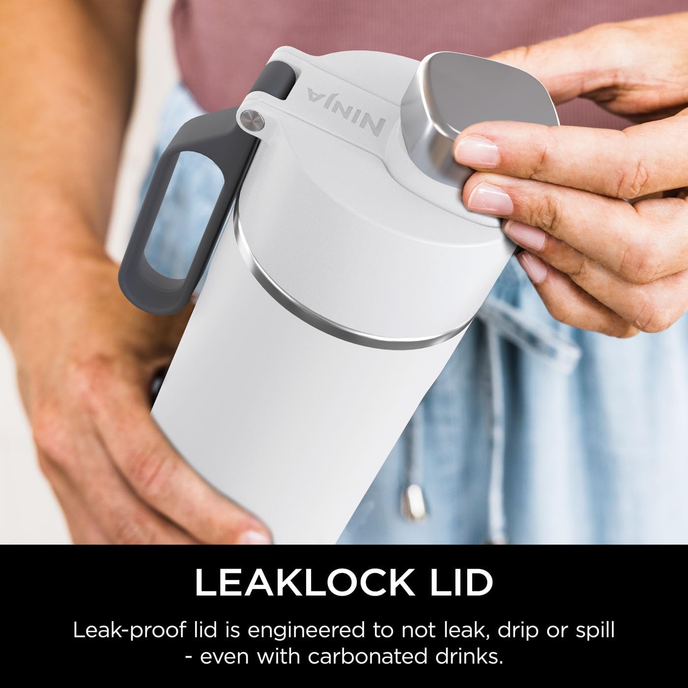 Ninja’s engineers have created a travel bottle built for optimum performance and comfort. The smooth, round spout allows you to drink comfortably – whether you need a quick sip or big gulp. The lid even snaps into place to ensure it won’t move as you drink – perfect for taking a quick one-handed sip during a jogging or workout session.